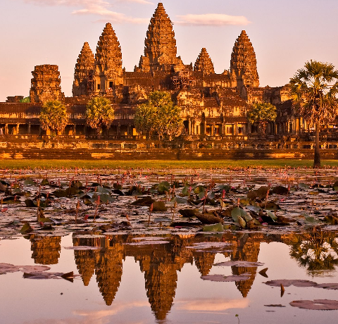 - Visit the Angkor Wat Temple Complex; a replica of the universe according to the Hindu mythology, we visit Bayon and its hundreds of giant carved faces; 11th century Baphoun; Hindu temple, Baksei Chamkrong; and Elephant Terrace and the Terrace of the Leper King. Watch the sunset over the Cambodian countryside from the upper terraces of an ancient Angkorian temple.